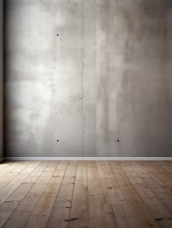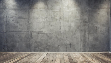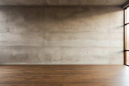 Concrete wall and empty floor create an industrial space ideal for presentations or artistic displays in a minimalistic setting