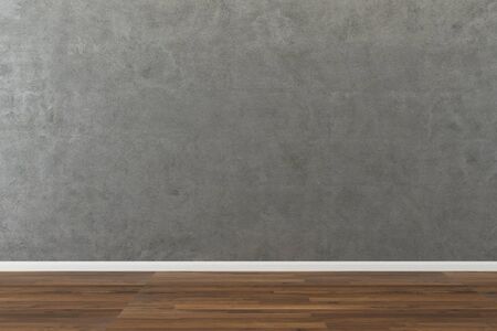 Empty room with gray wall and wooden floor. 3d rendering.