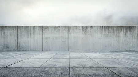 Minimalist outdoor concrete wall with fog in the background