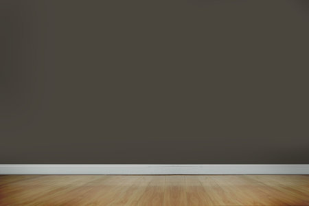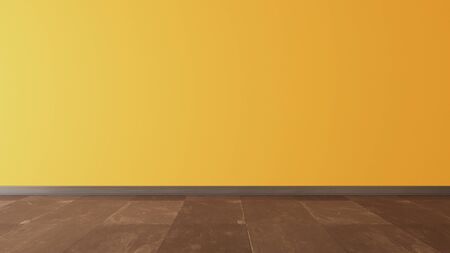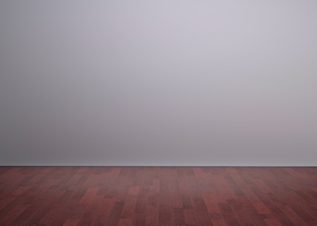3d render of empty room with wooden floor and gray wall.