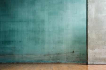An empty room with a green wall and wooden floor, AI