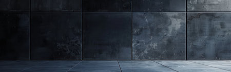 Dark blue concrete wall and floor. 3d render illustration background.