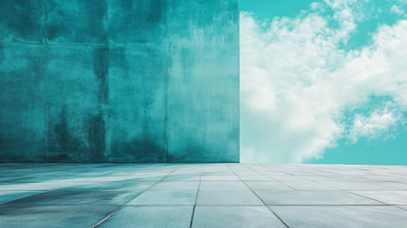 Minimalist turquoise wall with diagonal light shadow pattern