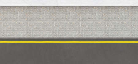 A flat front view of a section of raised sidewalk and street on a plain wall background - 3D render