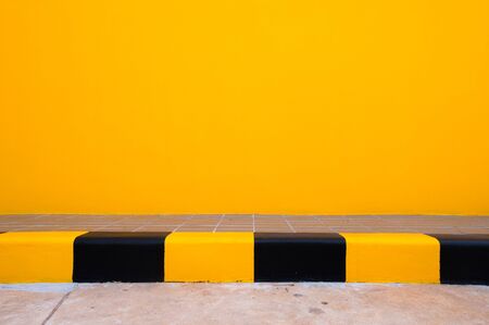 Yellow and black striped line on concrete wall