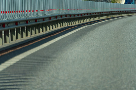 Safety barriers on highway. Anodized safety steel barrier. Enhancing highway safety.