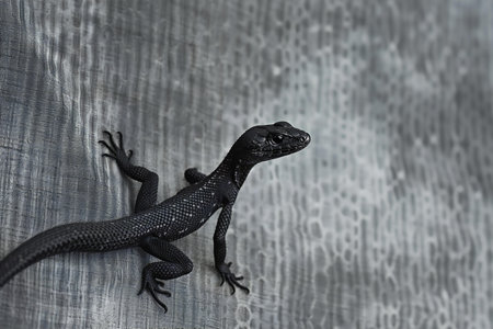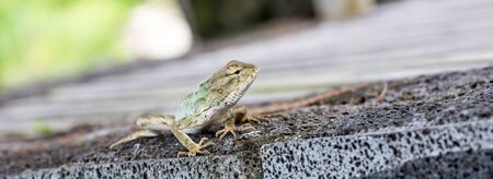 A selective focus shot of a cute small lizard hanging out. small reptile caught at sunbathing.
