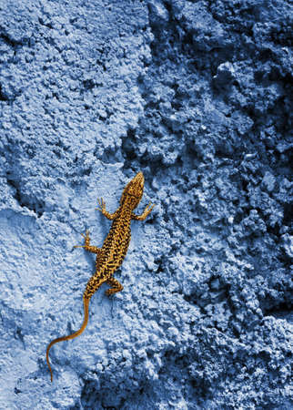 Lizzard standing on warm sandstone in the summer heat of the sunshine