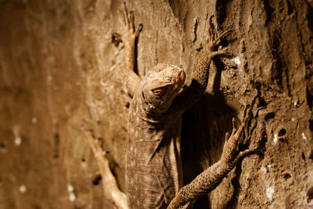 A lizard scaling a vertical surface, its toes gripping the wall with ease, highlighting the climbing abilities of reptiles.