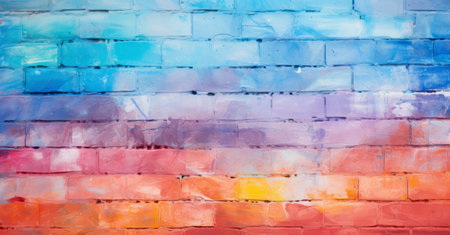 Brightly painted brick wall with abstract color blocks close-up