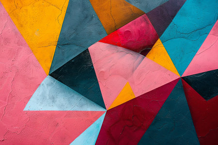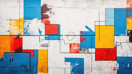 Colorful geometric painting on textured wall