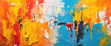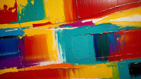 Abstract colorful background with geometric textured oil or acrylic shapes. Artistic banner with expressive graffiti wall texture and brush strokes