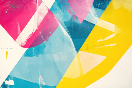 Abstract colorful geometric shapes with vibrant textures and patterns, showcasing blue, pink, and yellow hues for modern design projects