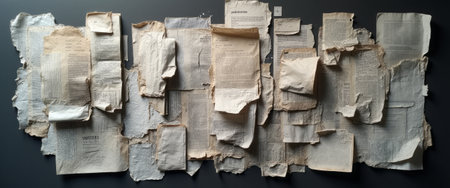 A textured wall entirely covered with vintage newspaper clippings, creating a nostalgic and artistic effect. The image emphasizes history, information, and retro style.