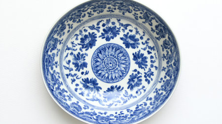 A beautiful blue and white floral plate resting on a textured surface, perfect for evoking elegance in a dining or decor setting. Ideal for aesthetic projects.