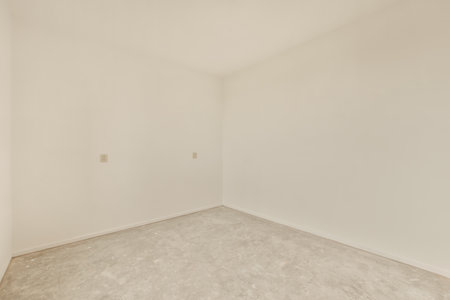 White wall with subtle plaster residue on the floor, creating a minimalist and modern interior design concept