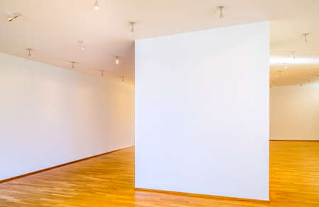 Exhibition hall interior and white wall with copyspace. Presentation concept. Mock up, 3D Rendering