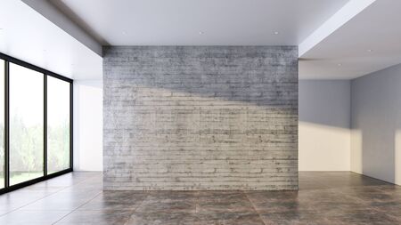 Large luxury modern bright interior with blank wall 3d illustration