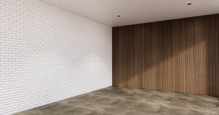 Architecture and interior concept Empty room and wood panels wall background 3D illustration rendering