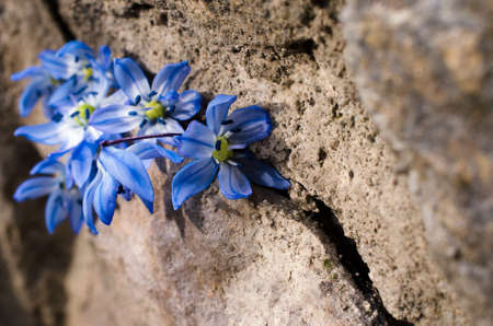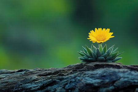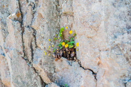Daisies growing on rocks. Yellow flowers and green stem grow on a rock. Nature always finds the opening through which to resurface.
