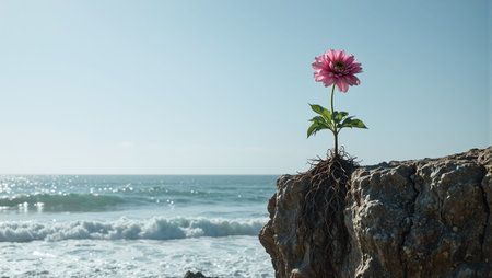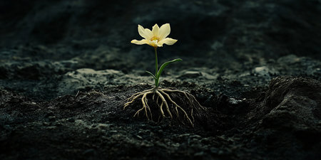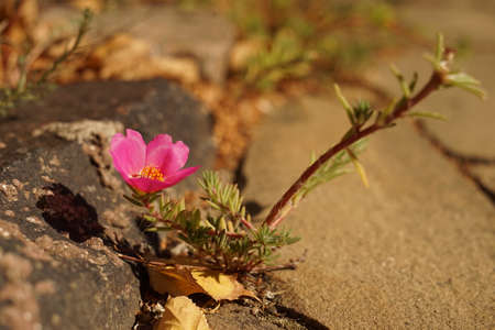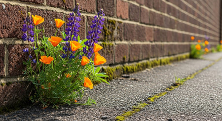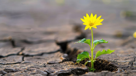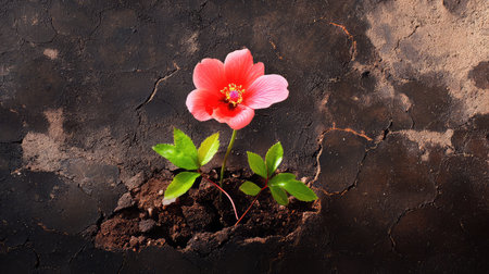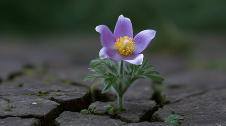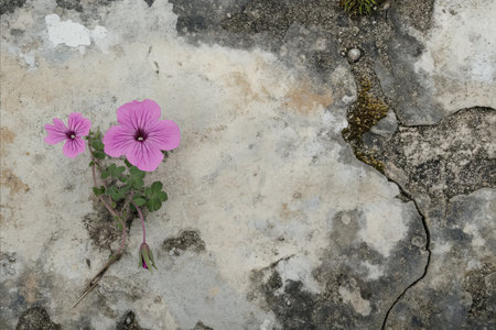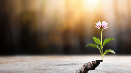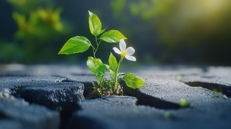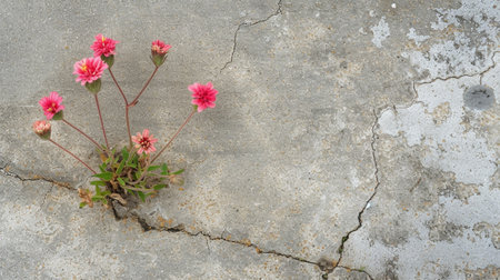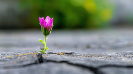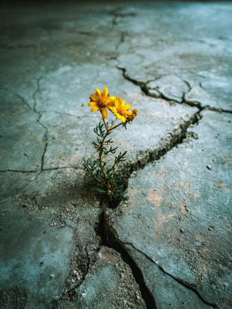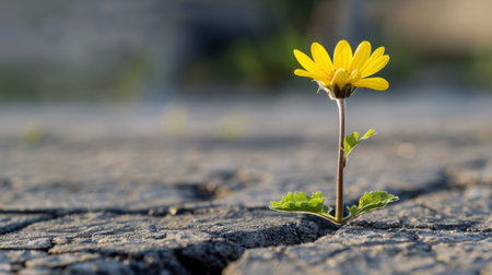 Resilient Flower Growing Through Crack in Concrete Pavement