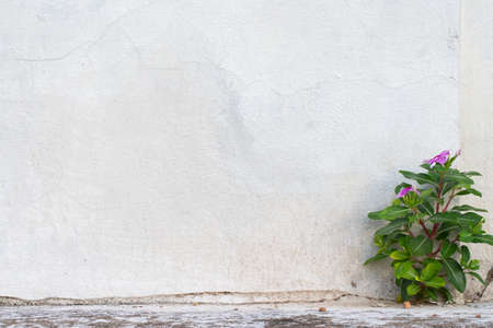 Wild Yellow Flower Growing Near Old Wall. Natural Grunge Background