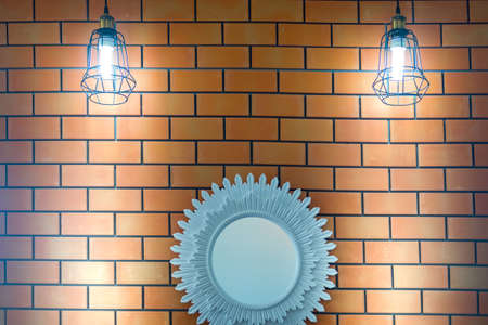 Lights on the wall next to a small table and the mirror. Part of the interior with copy space.High quality photo