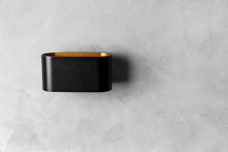 Modern black wall lamp on a gray texture wall with a place for the text. LED lamp on a gray background copy space