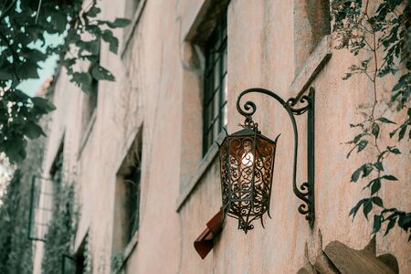 Elegant old fasioned metal lamp throwing triangles of light on a