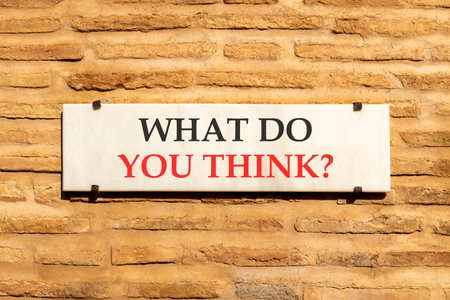 What do you think symbol. Concept words What do you think on beautiful brick wall. Beautiful brick wall background. Business and What do you think concept. Copy space.