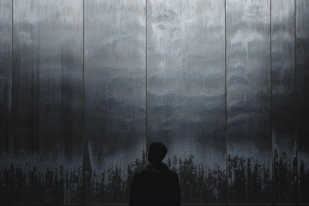 A close-up view of a dark brick wall reveals its rough texture and unique patterns evoking an industrial feel typical in urban environments.