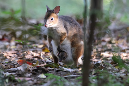 the swamp wallaby has a joey in her pouch