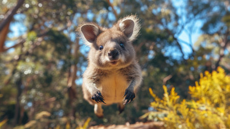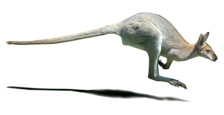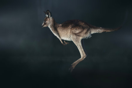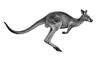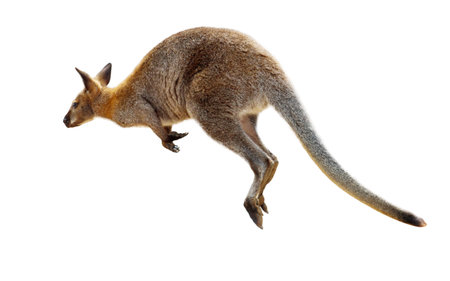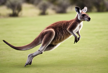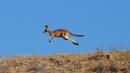 A kangaroo is jumping in the air. Concept of freedom and agility, as the kangaroo leaps through the air with ease