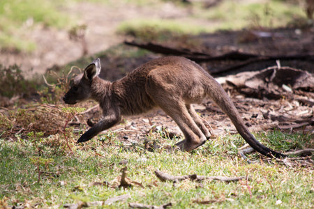 Beautiful kangaroo running and jumping on grass field Perth, Western Australia, Australia