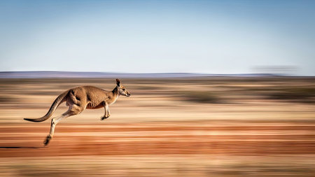 Kangaroo jumping in the desert with motion blur effect, Australia