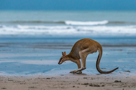 Kangaroo Wallaby at the beach during sunrise in cape hillsborough national park, Mackay. Queensland, Australia.