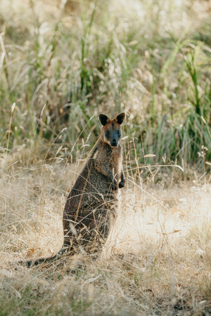 Swamp Wallaby, Wallabia bicolor, is one of the smaller kangaroos. This wallaby is also commonly known as the black wallaby