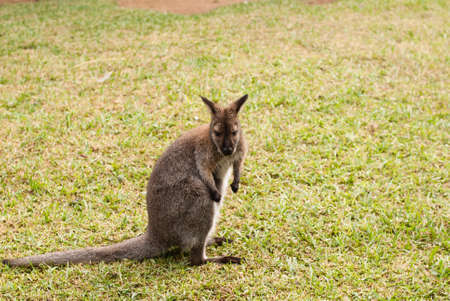 Young cute wild wallaby kangaroo on the grass in Queensland, Australia