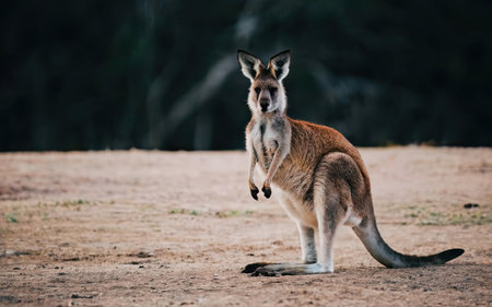 Kangaroo on the road in the Australian bush, Australia.