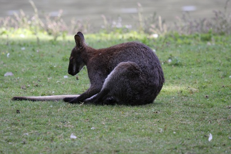 Kangaroo resting on the grass in a park in Australia.