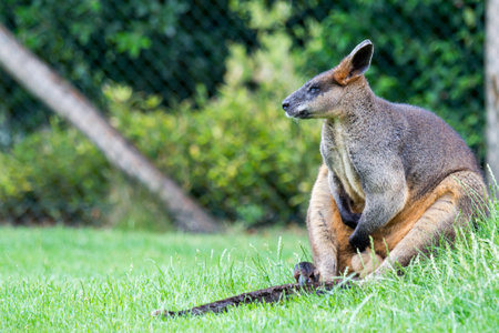 bennett's wallaby with a wallaby caged in the background, tropical kangaroo specie from Australia