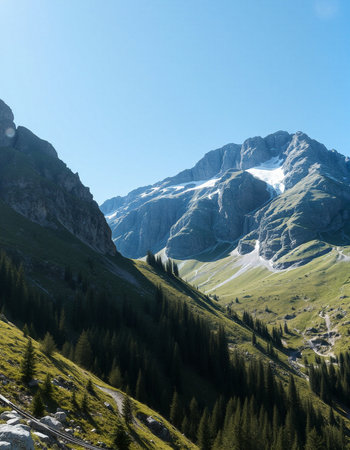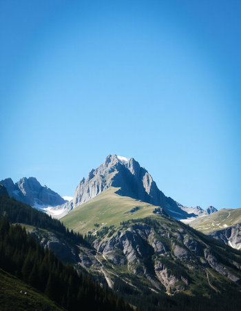 mountain landscape in summer with snow and clear blue sky, Switzerland
