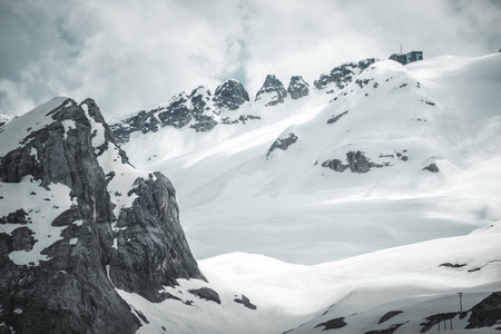 Mountain landscape with snow-capped peaks in the Swiss Alps