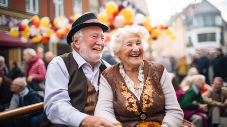 Senior German couple wearing traditional clothes at October Fest parade in Germany