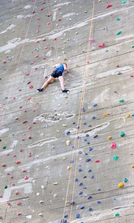 Pictures taken in a climbing center in Quebec, Canada. Wall has various colors of climbing grips