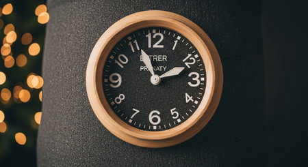 Closeup view of a modern clockface for telling the time.