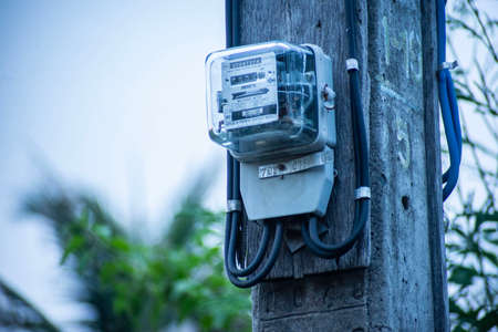 Electricity meter on electric pole on 2020 April, 4 in Bangkok Thailand