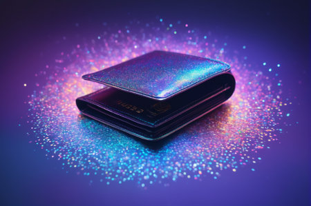 Glittering Holographic Wallet Surrounded by Sparkles. Generative AI.