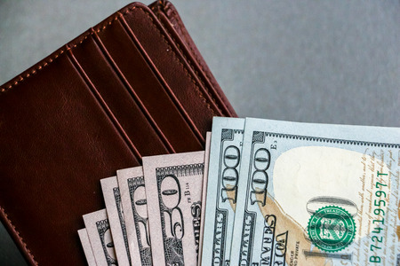 Purse with hundred dollar banknotes