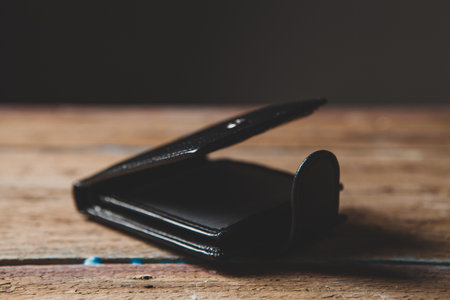 black wallet on a wooden table
